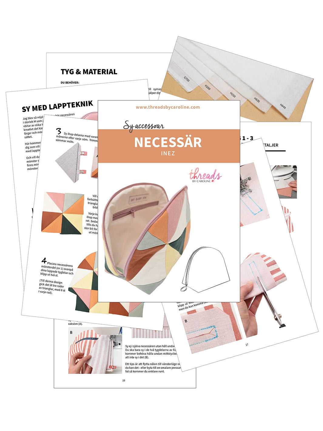 - Fusible interlining (non-stretch), for more stability and/or volume for the outer and lining fabrics. mer stabilitet och/eller volym till yttertyget. Interlining is optional but it does give the makeup bag a nice finish, especially if your outer fabric is light weight. Usually, one chooses different interlinings for outer and lining fabrics. See my guide in the sewing instructions.